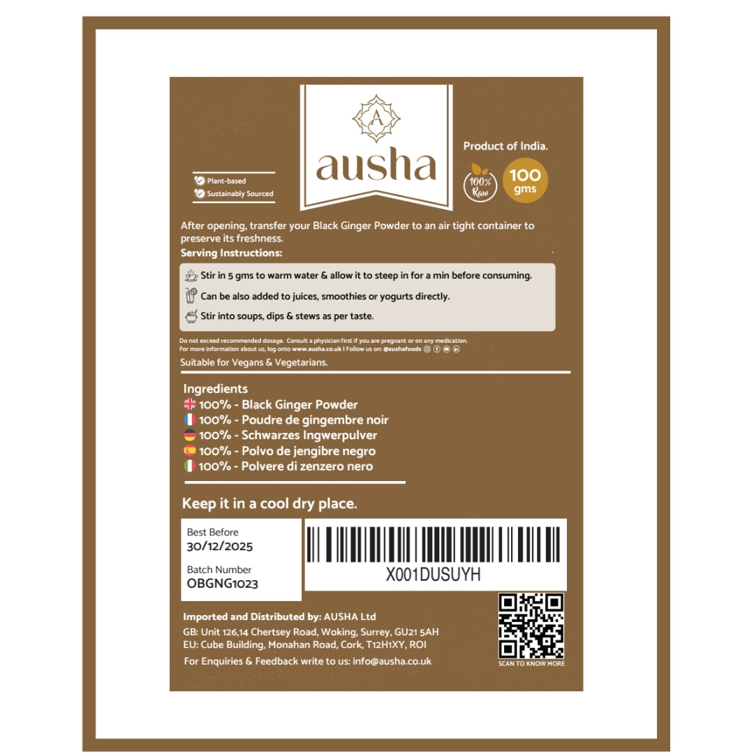 Derived from the roots of Kaempferia parviflora, Ausha’s Black Ginger Powder is a rare botanical known for its deep colour and earthy flavour. It can be added to Juices, Smoothies and consumed. FREE DELIVERY ON ALL ORDERS.NO MINIMUM ORDER VALUE CONDITION. Warning - Please don't not exceed the recommended dose. Food supplements should not be used as a substitute for a varied diet. The product should be stored out of the reach of young children.